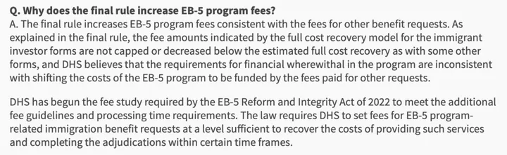 其次,移民局认为EB-5投资人和区域中心有更强的支付能力。他们进行的是大额投资,支付能力越强责任也越大,因此需要进行涨价。移民局认为最终的费用调整有助于提供一个良性循环的移民申请过程。