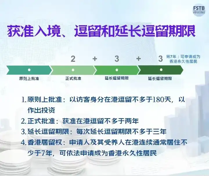 一般可获准在港逗留两年,期满后可申请延长逗留期限3年,其后可在每3年期届满时再申请延长逗留期限3年。他们如在港连续通常居住不少于7年,可依法申请成为香港永久性居民。