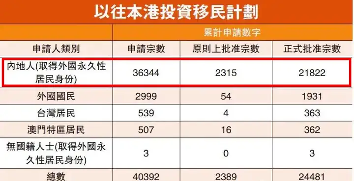 这一数据不仅显示出内地居民是香港投资移民计划的主要力量,更反映出他们在整体申请中拥有最高的获批通过率。